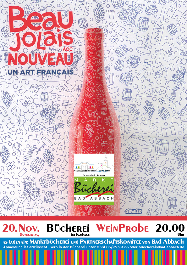 Liebe Abbacher, feiern Sie mit uns den neuen Jahrgang des Beaujolais – den Beaujolais Nouveau 2014 – in der Marktbücherei.