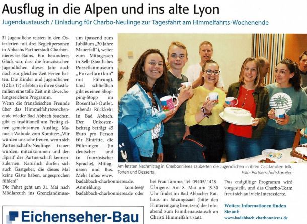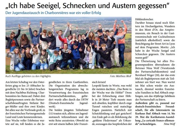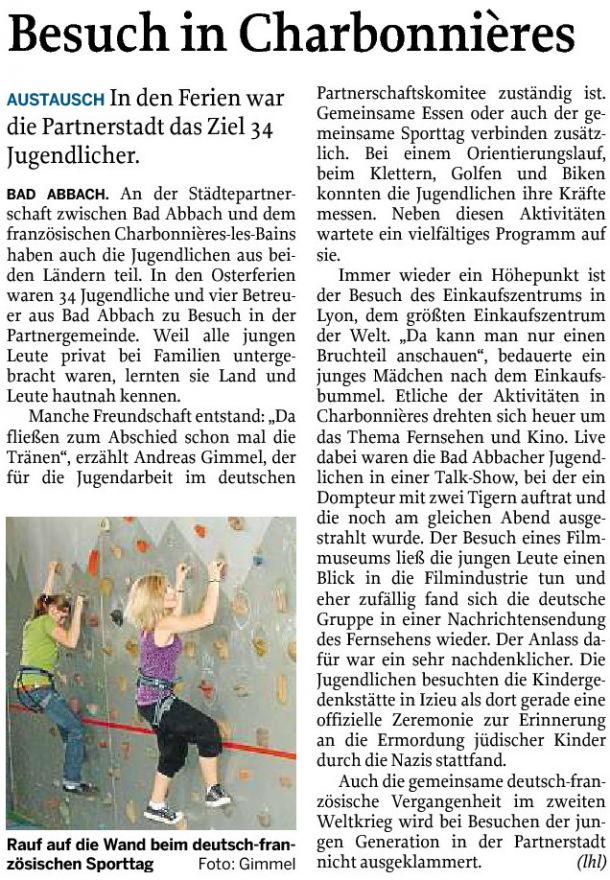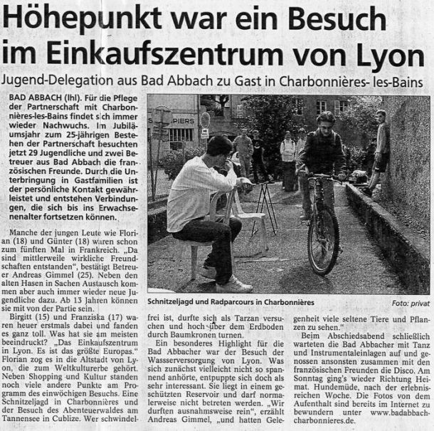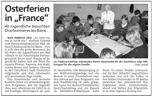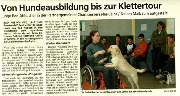 2003 - Artikel über die Jugendfahrt nach Charbonnières 04/2003