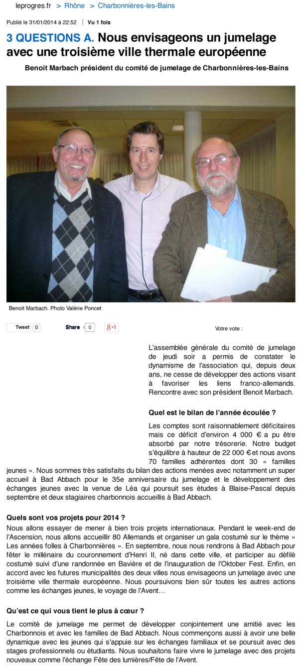 2014 - Nous envisageons un jumelage avec une troisième ville thermale européenne