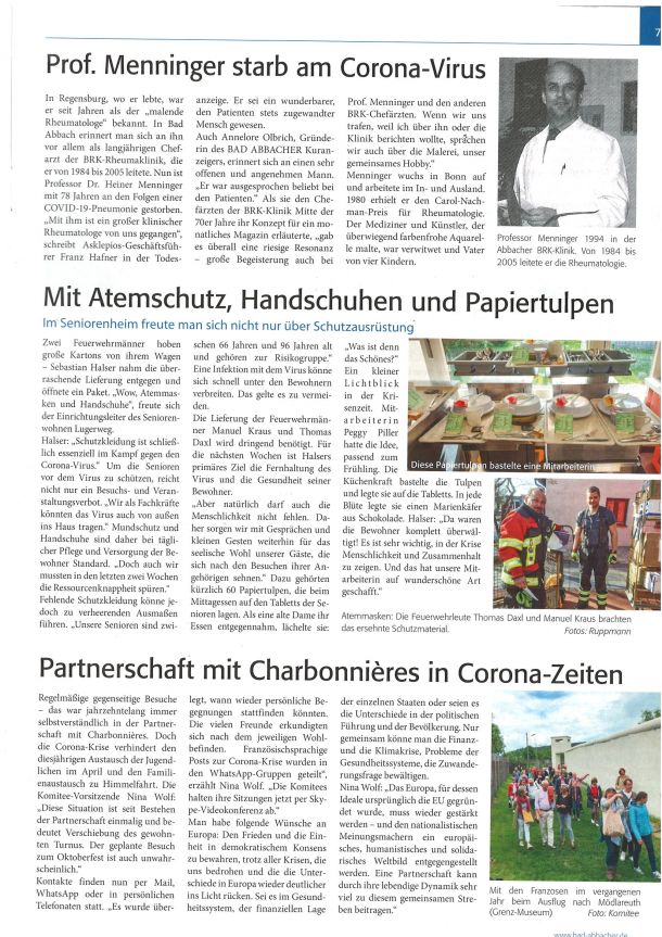2020 - Partnerschaft mit Charbonnières in Corona-Zeiten