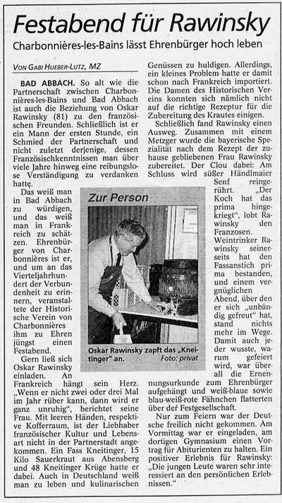 2002 - Festabend für Oskar Rawinsky - Ehrenbürger von Charbonnières