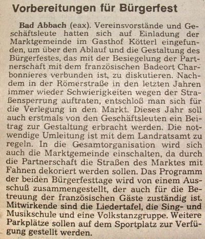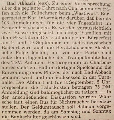 1978 - Vorankuendigung der Gäste aus Charbonnières