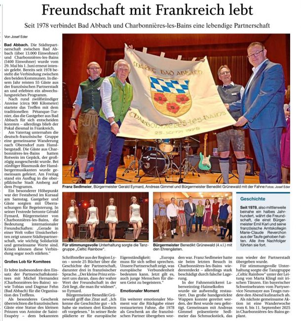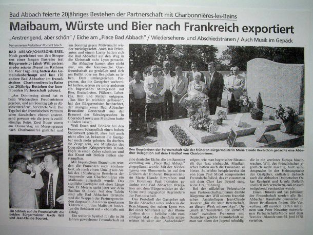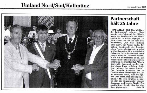 2002 - Il y a 25 ans... Charbonnières et Bad Abbach préparaient un magnifique exemple d'amitié