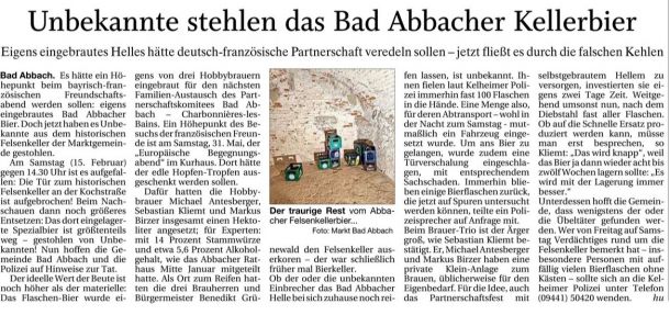2025 - Unbekannte stehlen das Bad Abbacher Kellerbier